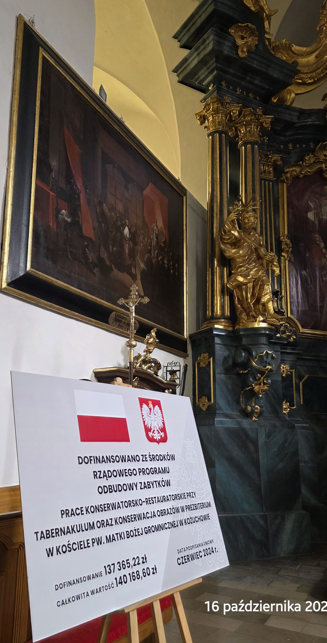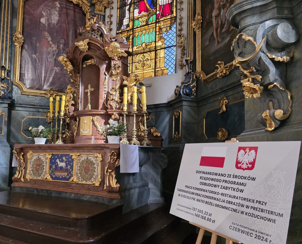 Zakończenie prac nad tabernakulum i obrazami – Rządowy Program Odbudowy Zabytków Posted By: Redaktor1 17 października 2025 Zwieńczyliśmy projekt „Prace konserwatorsko-restauratorskie przy tabernakulum oraz konserwacja obrazów w prezbiterium w kościele pw. Matki Bożej Gromnicznej w Kożuchowie” dofinansowanej z Rządowego Programu Odbudowy Zabytków