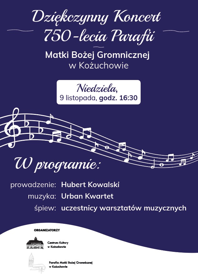 Dziś w naszej parafii odbędzie się szczególne wydarzenie. Zapraszamy na godz. 16.30 do kościoła parafialnego, gdzie Biskup Adrian Put poświęci odrestaurowane obrazy i tabernakulum. Będzie to wprowadzenie do koncertu finałowego Warsztatów Muzycznych pod przewodnictwem wybitnego kompozytora, muzyka i dyrygenta Pana Huberta Kowalskiego oraz muzyków z Kwartet Urban z Zielonej Góry. Około 70 chórzystów od piątku uczestniczyło w warsztatach na terenie Centrum Kultury Zamek. Dziękujemy już dziś Centrum Kultury Zamek wraz z Panią Burmistrz za okazaną pomoc w organizacji, dziękujemy DPS Kożuchów za pyszne posiłki. Nade wszystko muzykom, którzy zapisali się na nasz Warsztat i koncert. Czujmy się serdecznie zaproszeni do wspólnego świętowania